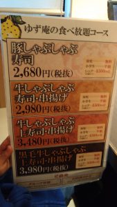 なかなか探せず、道沿いで見つけた寿司としゃぶしゃぶの店ゆず庵に行ってきました。