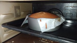 基本、すんごく凝るよりフルーツが多ければ多いほど喜ぶので、毎年何種類かのフルーツをならべてごまかすのですが、今回はスポンジケーキを焼いてみました。