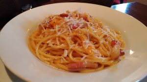 私たちが想像するようなクリーミーな感じではなく卵が強いカルボナーラでした。