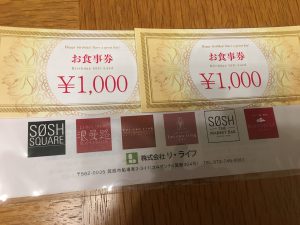 お誕生日につき、リ・ライフグループから、2000円分のお食事券が郵送されてきました。