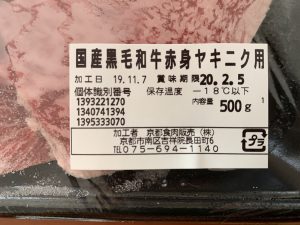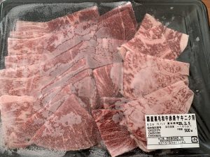大阪府泉佐野市より、国産黒毛和牛赤身ヤキニク用500gx2パックが、冷凍で届きました。