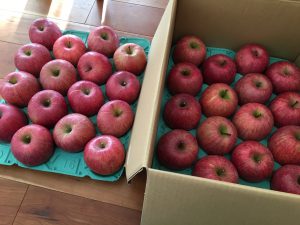 中には、割れてしまっているりんごもあり、これが普通の状態なのかもしれませんが、スーパー等で売られている綺麗なりんごを見慣れている私は、少し不満です。