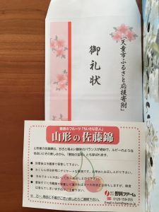 少し前に山形県天童市からも、さくらんぼを頂きましたが…大きさ・量・味において、寒河江市の方が良かったです。