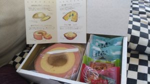 バウムクーヘンと小さいお菓子の詰め合わせ。