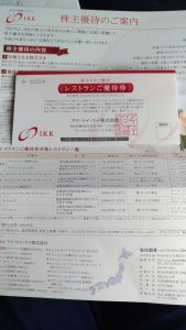 アイ・ケイ・ケイ株式会社から、お菓子のつめあわせとレストラン優待券が届きました。