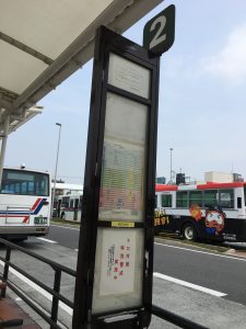 そして、なんとも人気のない東側のバス停2番から、バスに乗車です。