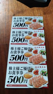 3月は、100株で3000円相当の餃子などが選択できますが、