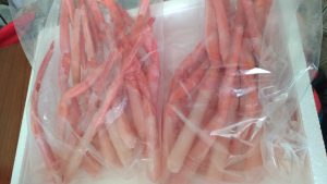 北海道根室市から、北海道産紅ズワイガニむき身1kg(500g×2)が冷凍便で届きました。