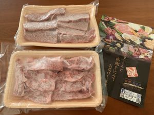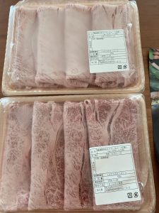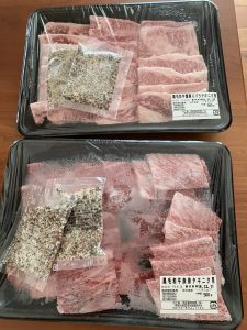 大阪府泉佐野市より、黒毛和牛霜降りバラ焼肉用500g×2パックが、届きました。