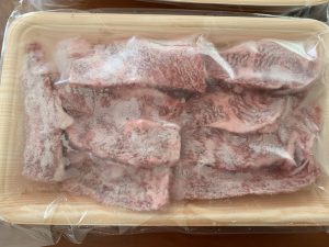 大阪府泉佐野市より、黒毛和牛切落し250g×7パックが、冷凍で届きました。