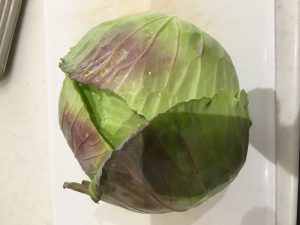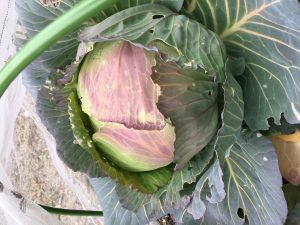 昨年度は、キャベツの上にヒヨドリが乗っかり、ぜ~んぶ食べられてしまったので、今年度は、ドーム状に小さな網目状の白い布を被せたのです。