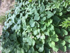 今年の夏は猛暑で、サツマイモのツルがなかなか伸びなかったのですが、少し涼しくなり目を離したスキに、こんなにもしげしげと茂っていました。